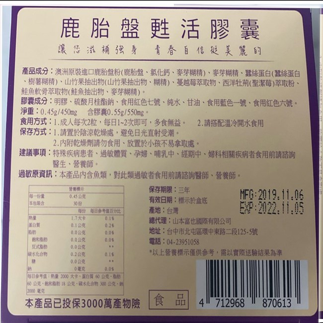 白家綺代言 山本富也 歐派女神 澳洲 鹿胎盤甦活膠囊 時光膠囊6盒入代理 Yahoo奇摩拍賣